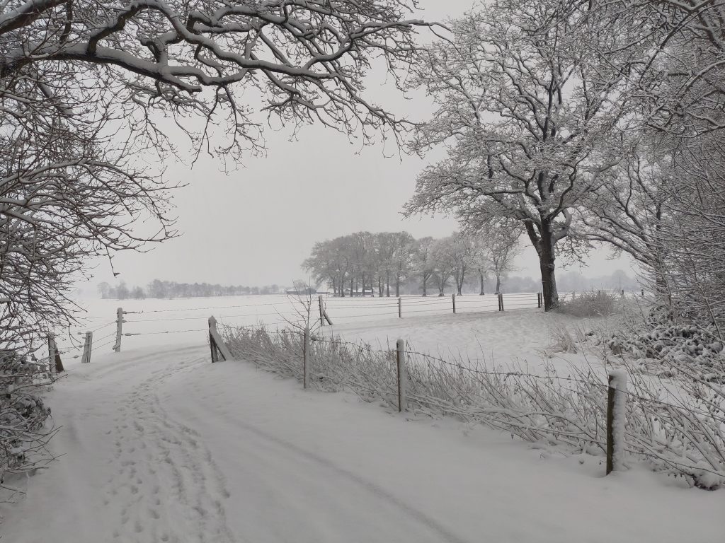 Op de laatste ochtend van de kerstvakantie keken we opeens een witte wereld in!