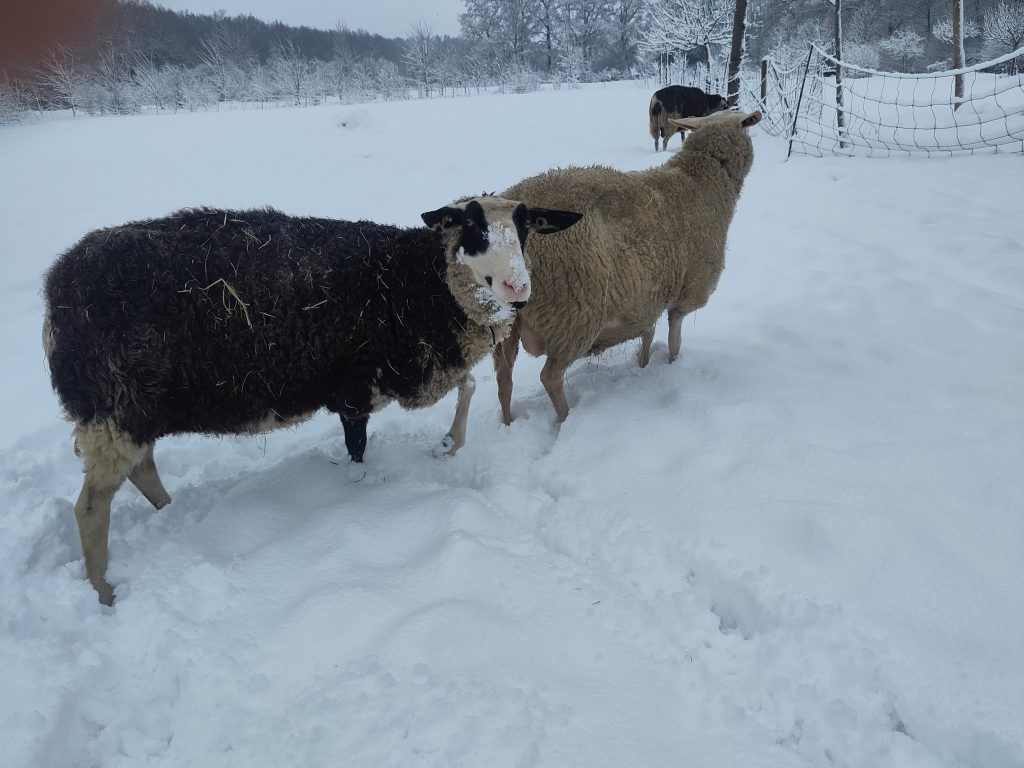 In 2021 liep het lammeren niet goed af. ’s Ochtends stond ze ineens met twee (hele grote) dochters in de wei. Maar ’s middags bleek, dat er nog een derde (inmiddels dood) lam in zat. Dat zat nog vast in de baarmoeder… Uiteindelijk moest er een keizersnee worden uitgevoerd om het derde lam weg te krijgen.