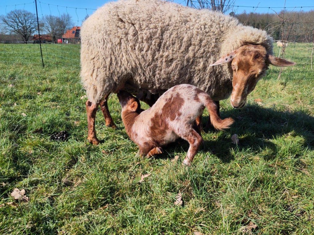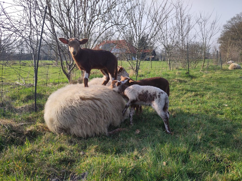 Daarna wilde ik haar een jaartje rust geven. Maar Arie en Babette waren dol op elkaar. En toen in november 2019 Arie een keer ontsnapte had dat dus direct gevolgen. In april 2020 had Babette weer twee lammetjes: Sandra en Krelis.