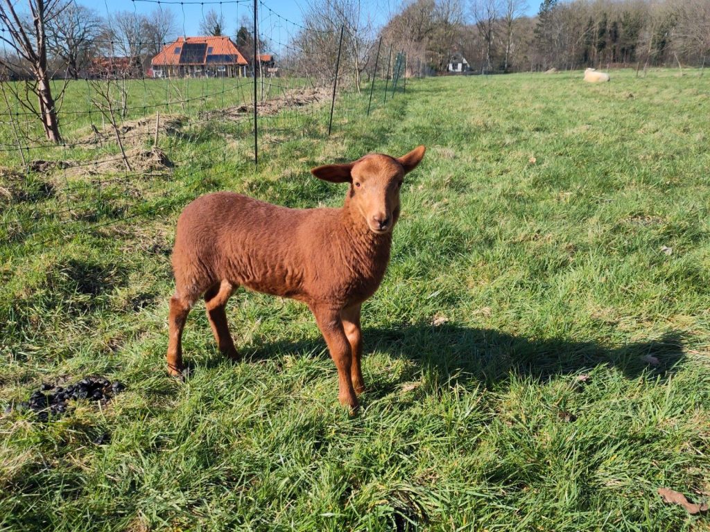 Omdat het fantastisch weer is kunnen de lammeren al heel snel de wei in. De eerste dag blijven ze nog bij mama, maar na een paar dagen rennen ze gezamenlijk de wei rond.