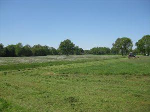 Het grootste deel van ons weiland is weliswaar gemaaid door de boer, maar tussen de afgelopen najaar geplante boompjes (het begin van een voedselbos) durfde de boer niet goed te komen. Dus er stond nog aardig wat gras op het land. Nu zijn er twee scholen wat dat betreft.